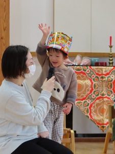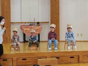 読経、のんのんののさまの歌を歌い第一部は終了。キラキラの冠👑を被りいよいよ第二部の始まりです!!