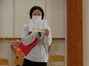 今日のお楽しみは『スタンプラリー』です!好きなお友達と一緒にスタンプを集めよう!と言うことで、担当保育士から説明を聞きます。