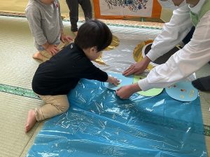 すみれ組の男の子→染め紙をしたうろこ