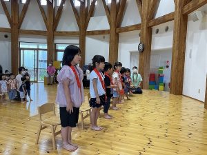 また、暑い日々にみんなで打ち勝とうということで、大きな声で「エイエイオー!!」と気合い入れをしました。