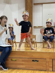 つぼみ組男の子も、ニコニコ笑顔で質問に元気よく答えてくれました。