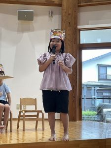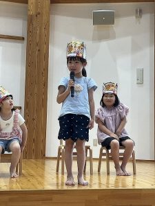 すみれ組男の子は、緊張の様子でしたが大きくなったら「ダイオウイカ」になりたいとポーズつきで答えてくれました。