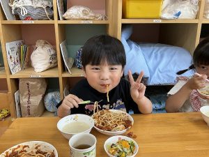 「先生入れてないのにね?」と言うと、すみれ組さんのお友だちから「私も入れてない!!」とかわいらしい発言が🤭