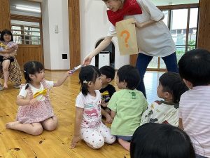 蒸し暑くスッキリしない日が続いていますが、園内では子ども達が汗をいっぱいかきながら元気に遊んでいます。