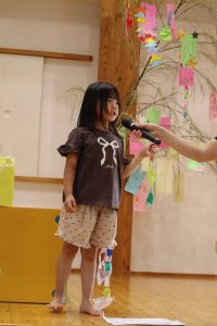 お次は、クラスごとに短冊に書いた願い事を紹介をしてもらいました。