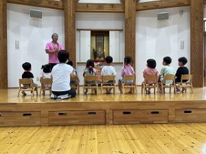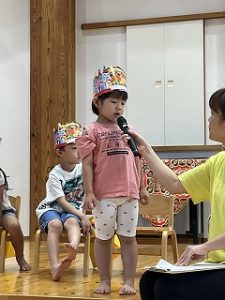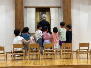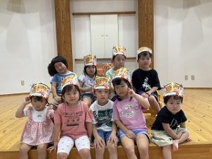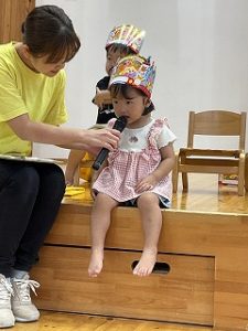 いつものように読経、のんのんののさまを歌った後に冠を被って、9名のお友達をお祝いをしました👏