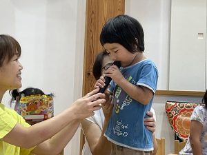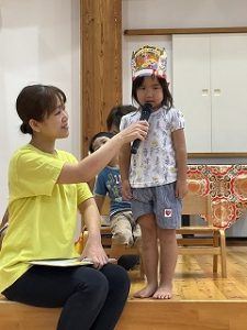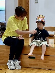 暑さがまだまだ厳しい8月の終わりに8月生まれのお友達の誕生会がありました。