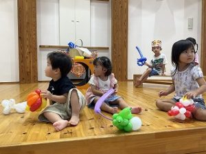 今回も素敵な帽子を被ってつき組とほし組のお誕生日のお友達のリクエストに応えて、その場で見事なバルーンアートを作ってくれました💕