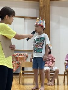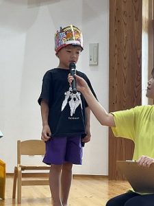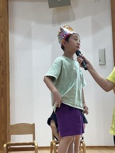 子ども達が「花火」「プール」「すいか」と答える中、「風船🎈」と答えるお友達に「それだ!!」とピンときた様子。