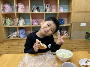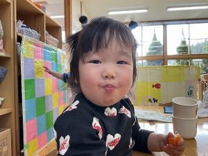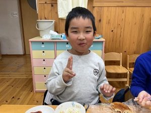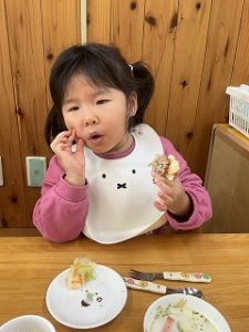 園長からは、「来週に備え、体調を崩さない為にも、手洗い、うがい、換気、咳エチケットを心がけてください。そして、お友だちと楽しく遊び、美味しいものをたくさん食べることも大事ですよ。」と教えていただきました。